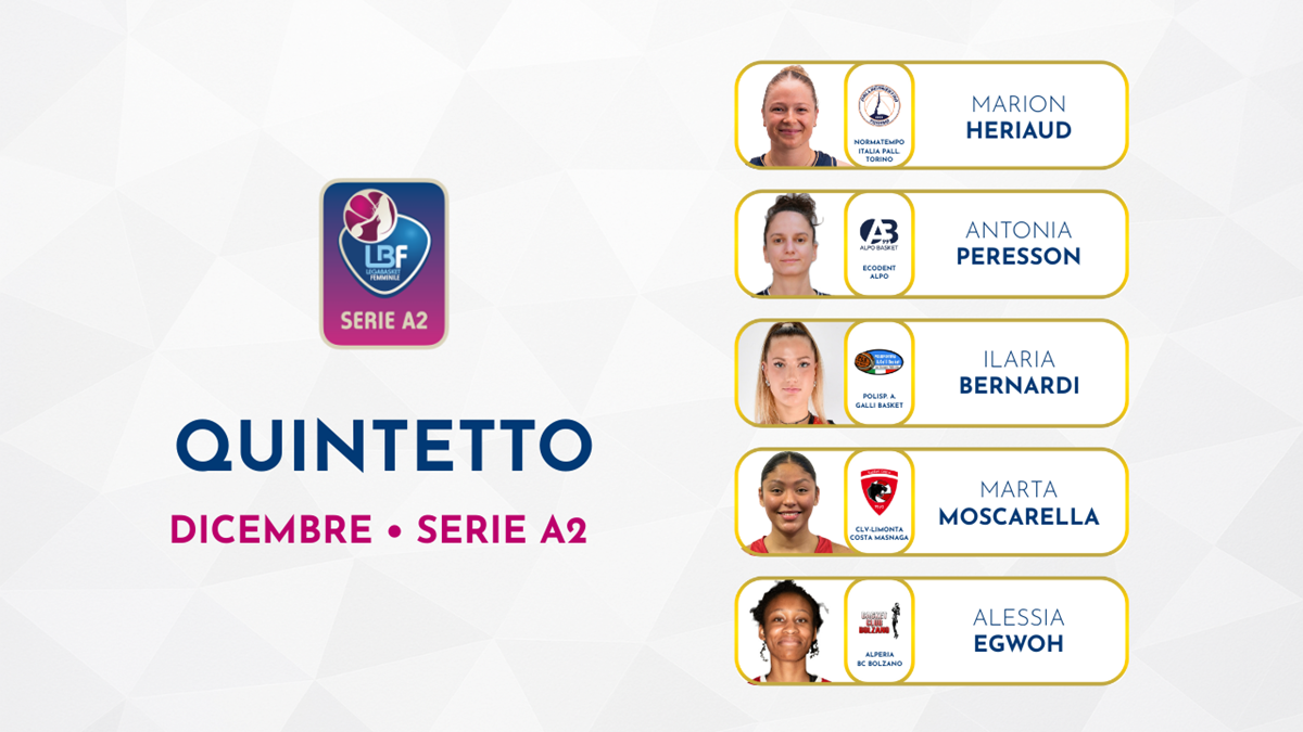 Ecco chi sono le cinque giocatrici che si sono distinte maggiormente nell'arco del mese di dicembre di Serie A2, secondo la Lega Basket Femminile.