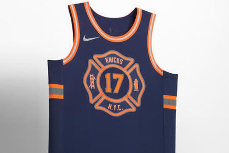 L'uniforme di New York Knicks onora i vigili del fuoco locali con lo stemma dei vigili del fuoco. Presenta anche i colori tradizionali della squadra con una tonalità blu più scuro. Il design si discosta da ciò che i fan vedono tipicamente al Madison Square Garden: