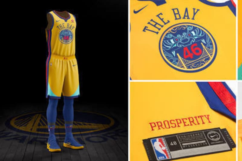 I Golden State Warriors hanno adottato un approccio culturale, mescolato con un'influenza cinese, che è una realtà demografica ben rappresentata nella Bay Area. L'emblema del petto presenta il Golden Gate Bridge con simboliche immagini cinesi: